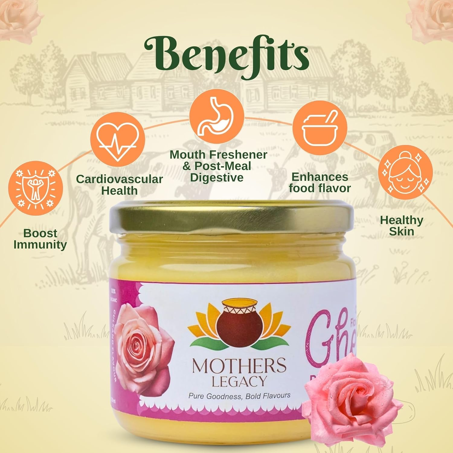 Mother Legacy Pure Organic | Grassfed Desi Cow Ghee with Gulkand Flavor